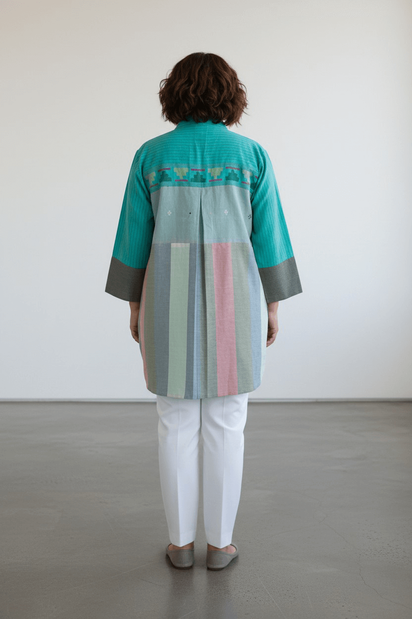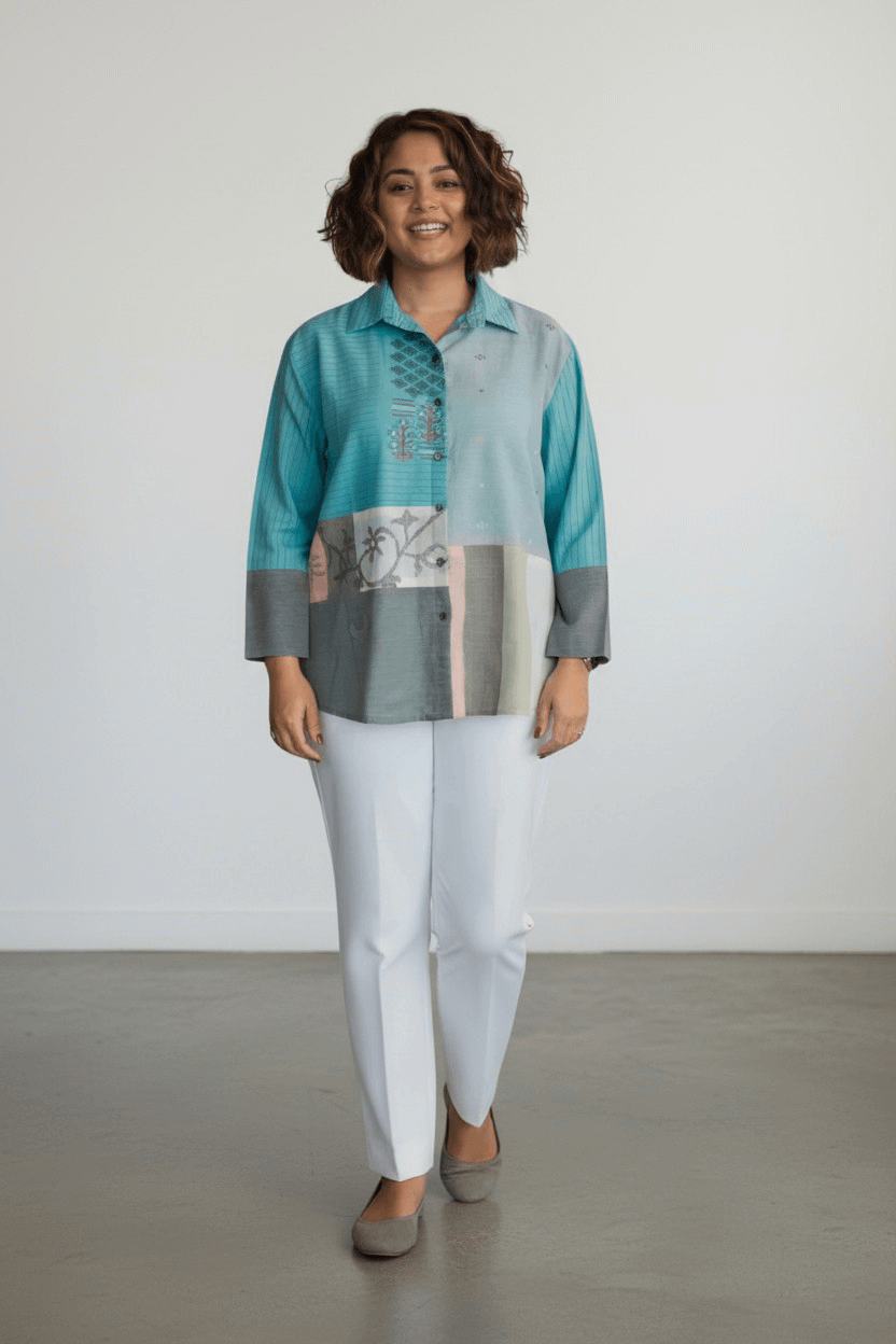 •Shirt in pure handwoven cotton using Bengal Jamdani and Taant patches.