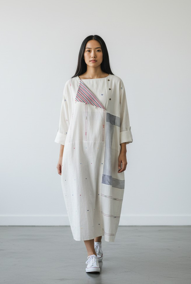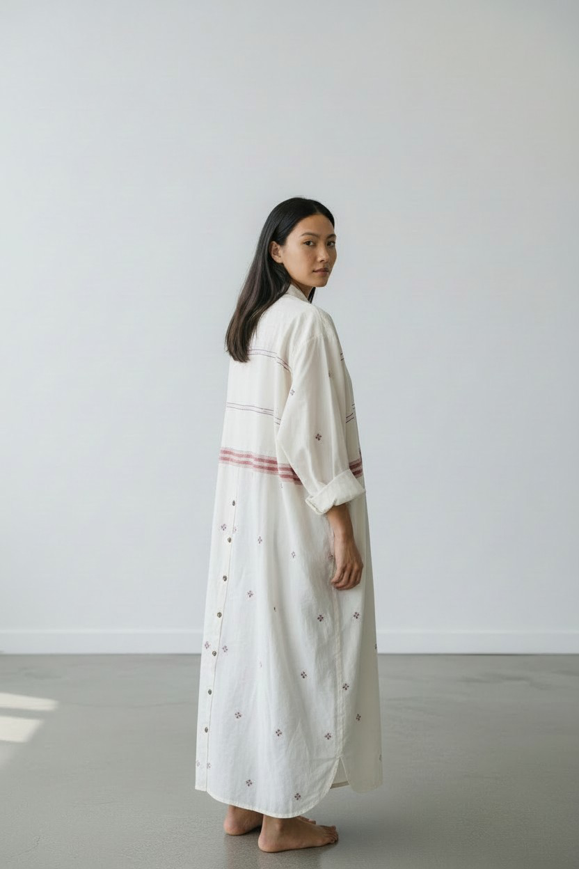 A mindful reinterpretation of Bengal Jamdani and Taant, this Patch Shirt Dress is