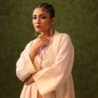- Kantha hand-embroidery at finishing edges, with thinly quilted collar and pocket detailing anchored with zari.