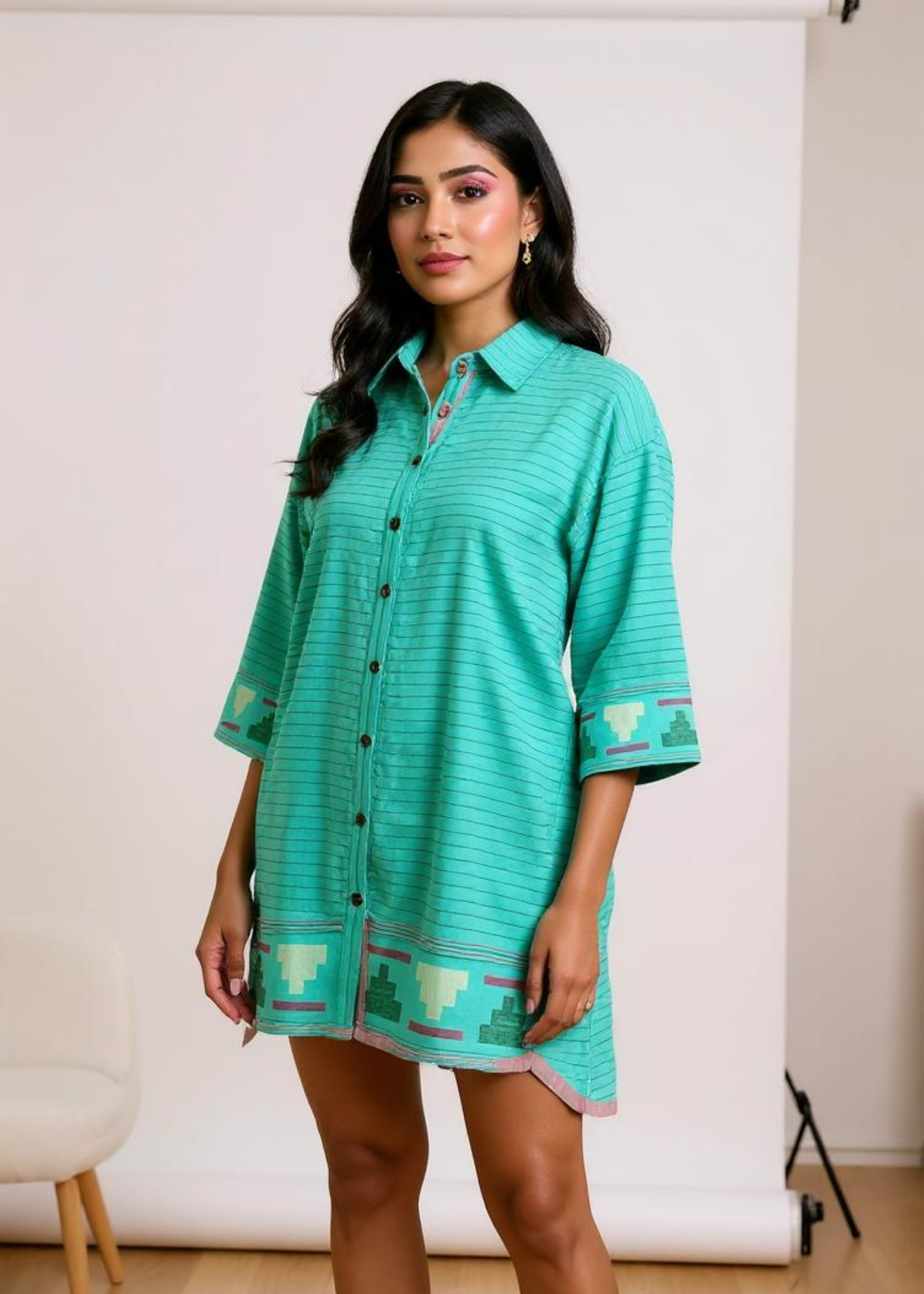 - Fabric: 100% cotton Jamdani, handwoven.