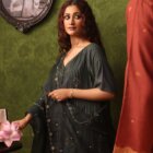 - Pure silk organza, hand-embroidered with zari, scalloped edges, 2.5 m length, paired with Amrita dress & pants.