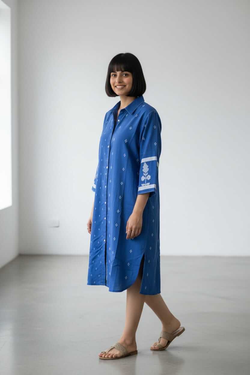 •Features subtle white Jamdani butis with fine white striped detailing