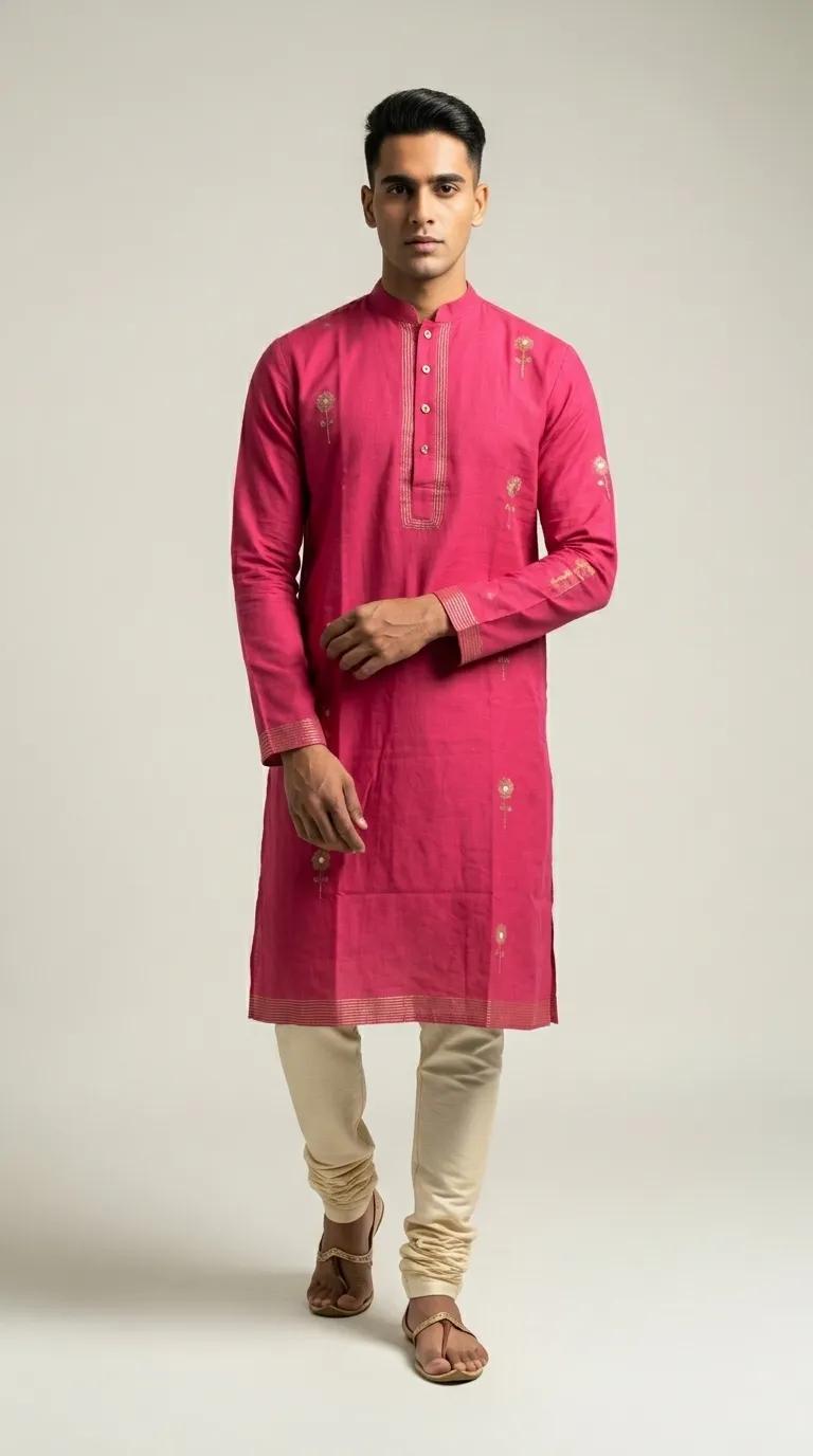 •Kurta in pure handwoven Bengal Jamdani cotton