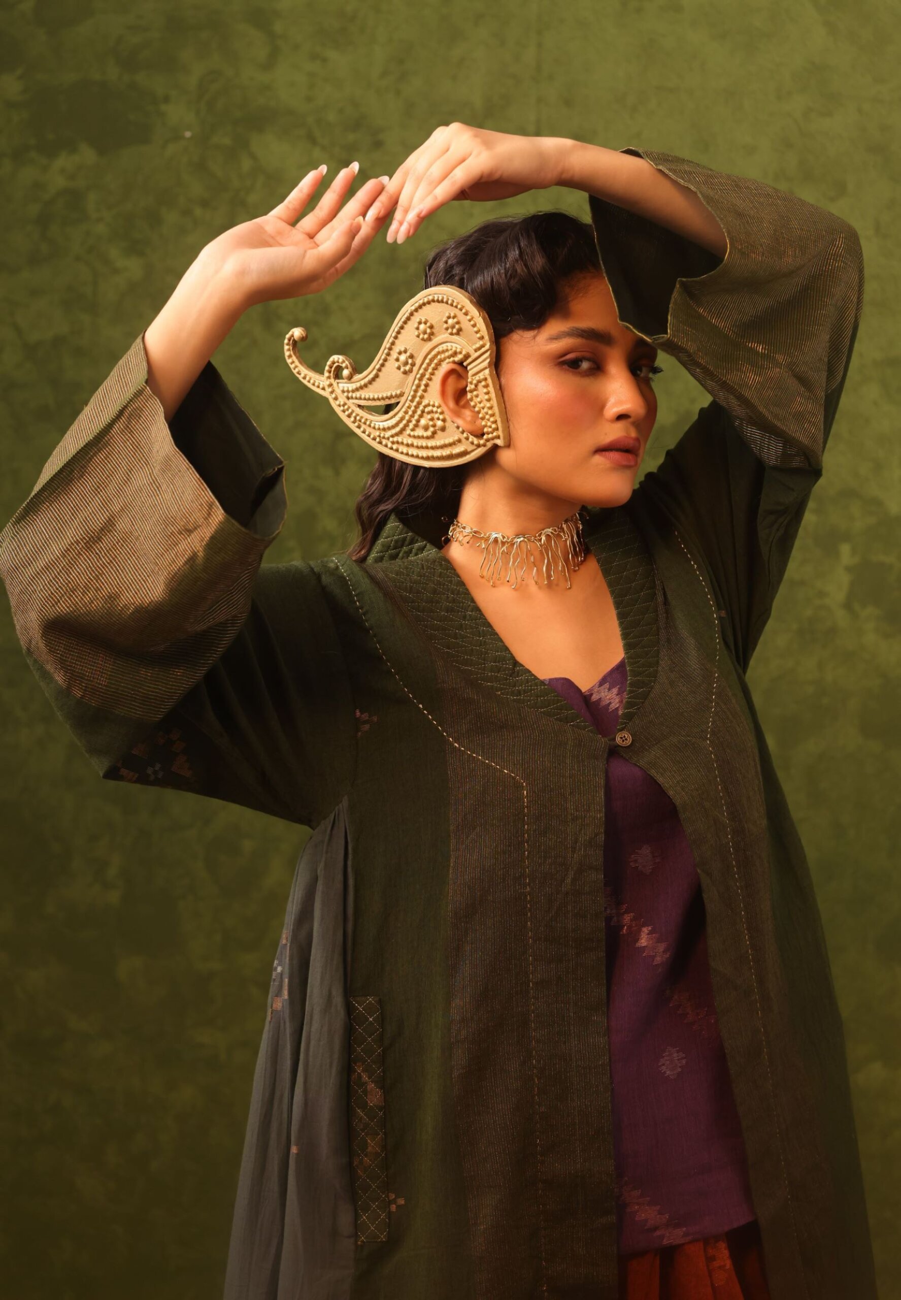 - Single metal button closure at the bust allows you to wear it open as a layer or closed as a Jamdani jacket.