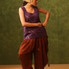 - Rich purple cotton hand woven with diagonal lines of copper zari karat borders.