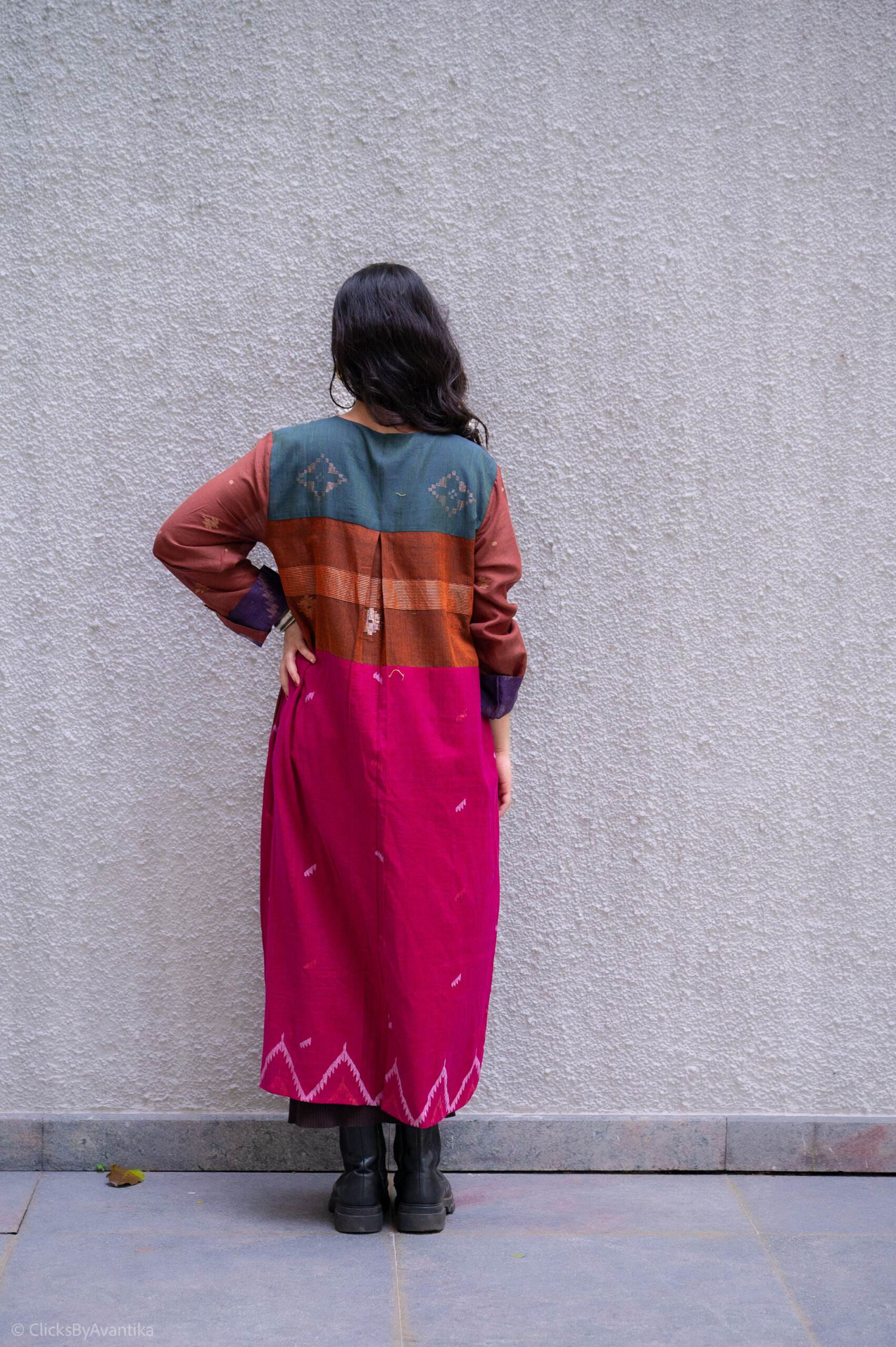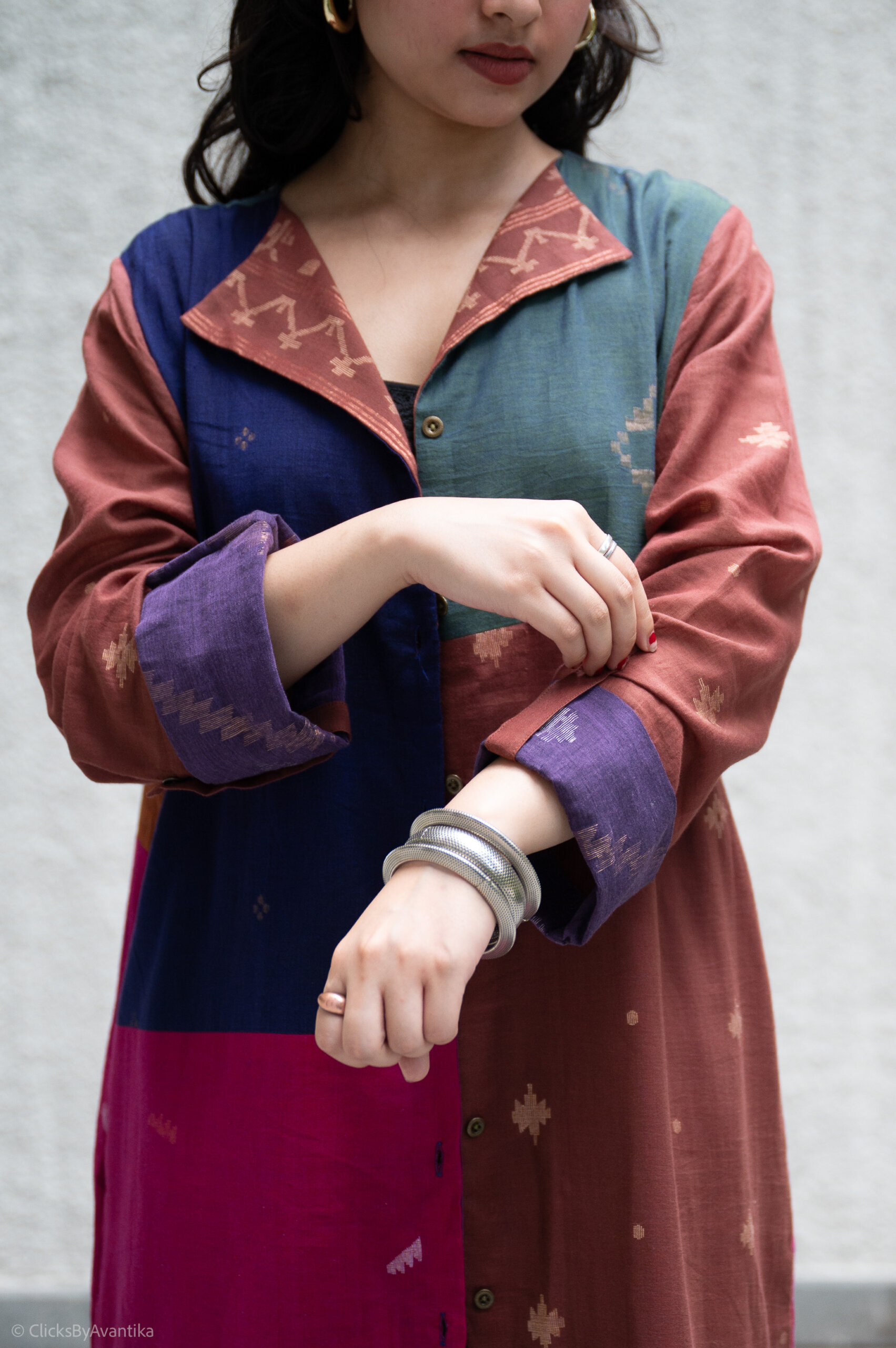 •Shirt dress in pure handwoven cotton using Bengal Jamdani and Taant patches.