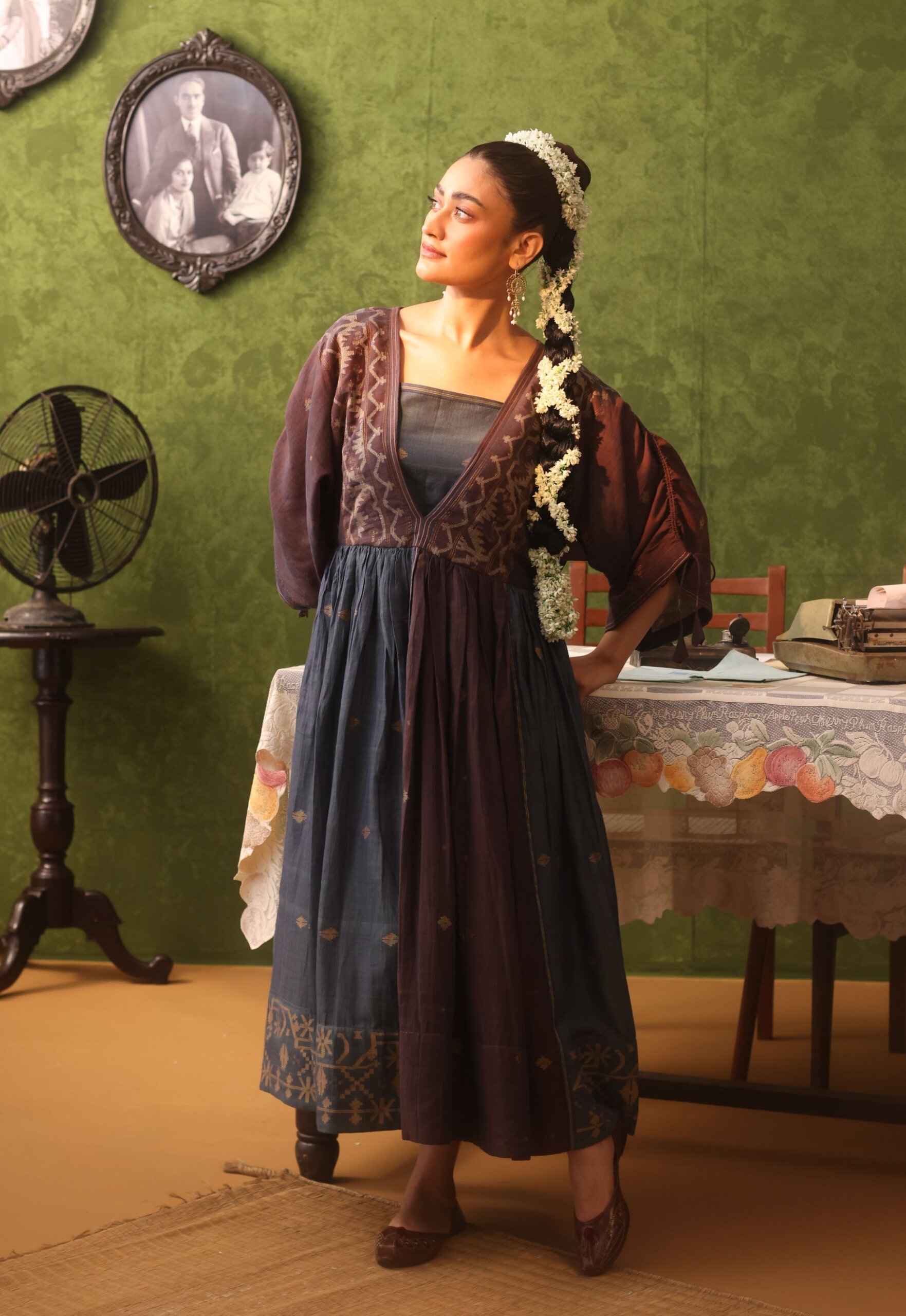 - The fabric is pure, handwoven cotton Jamdani with hints of zari; lining in mulmul.