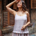 A playful blend of colour and craft, this striped spaghetti top brings together handspun texture and effortless tailoring in a light, contemporary silhouette.