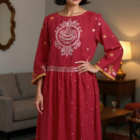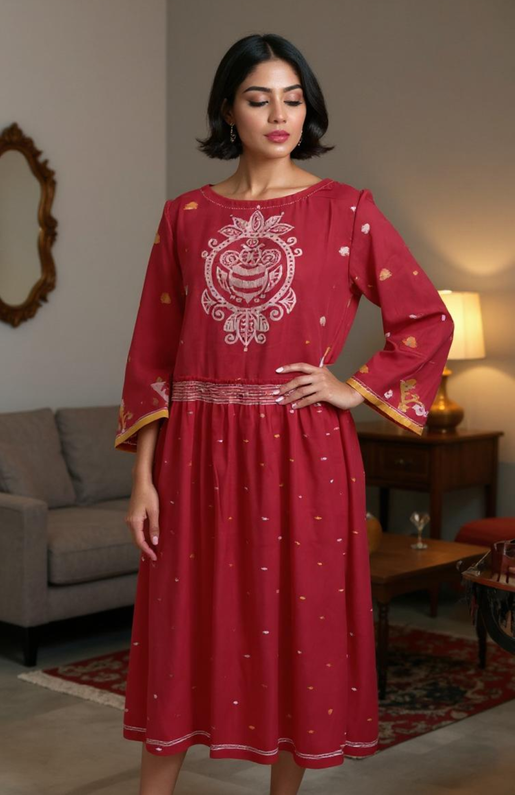 - Easy-fit silhouette for relaxed comfort; Gathered at the mid-hip with intricate threadwork detailing