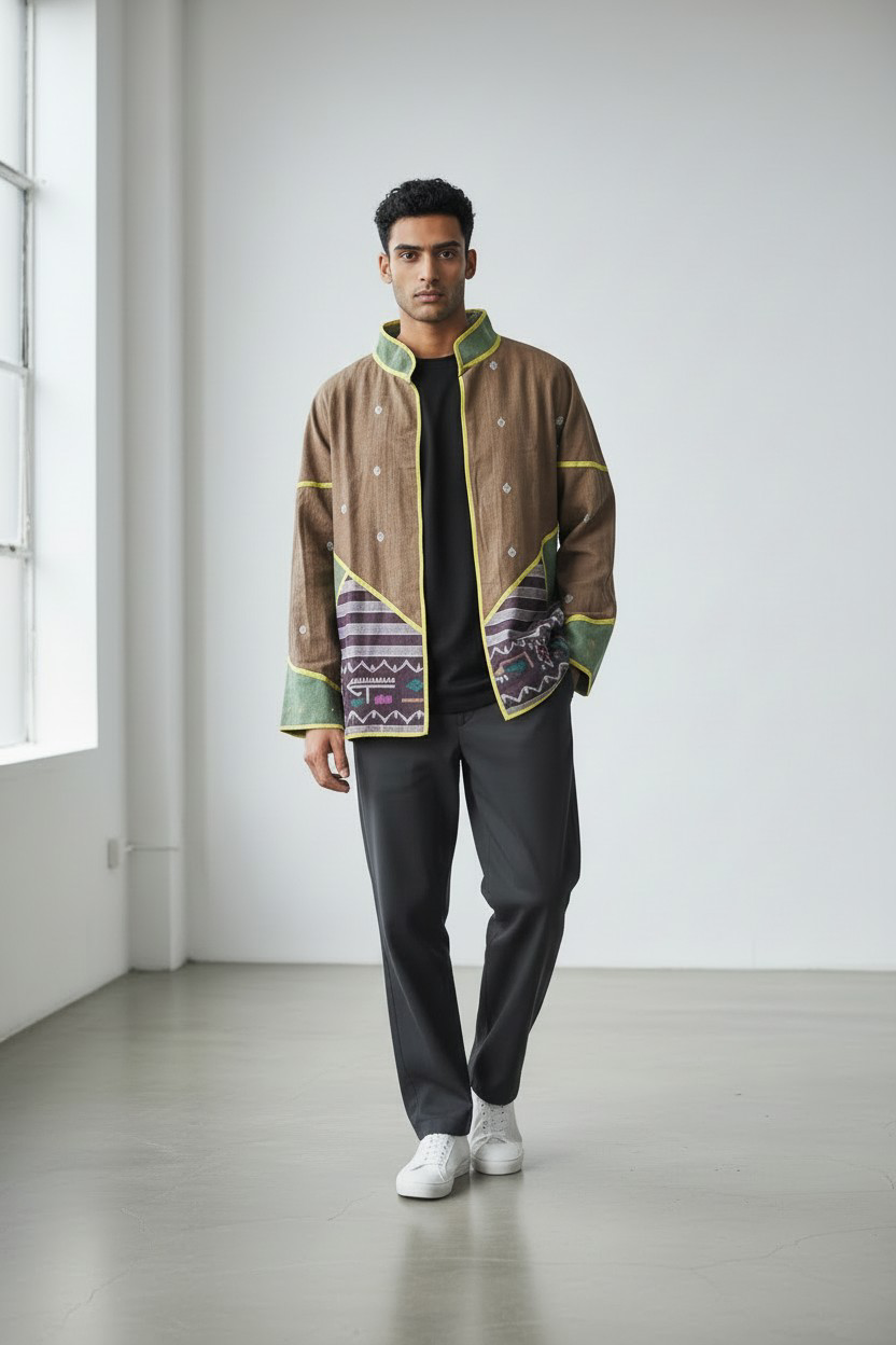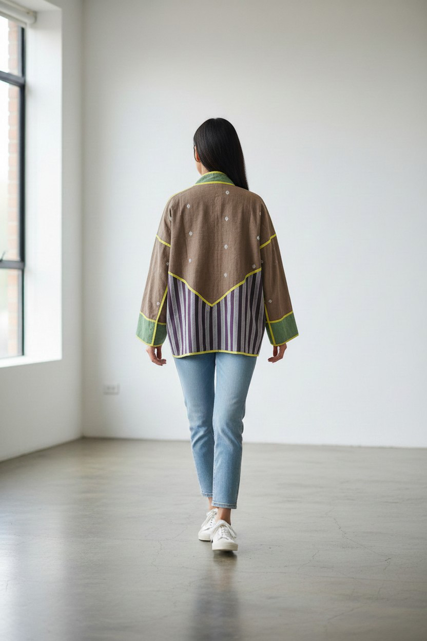 A mindful reinterpretation of Bengal Jamdani and Taant, this Patch Bomber is