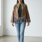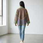 •Bomber jacket in pure handwoven cotton using Bengal Jamdani and Taant patches.