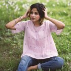 The pleated tops have an easy comfortable fit and can also be worn as a blouse-on. Comes with an attached lining. And margin inside.