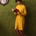 - Borders: Karat border Jamdani with hints of zari placed on the front and sleeves, adding subtle shimmer without overpowering the kurta.