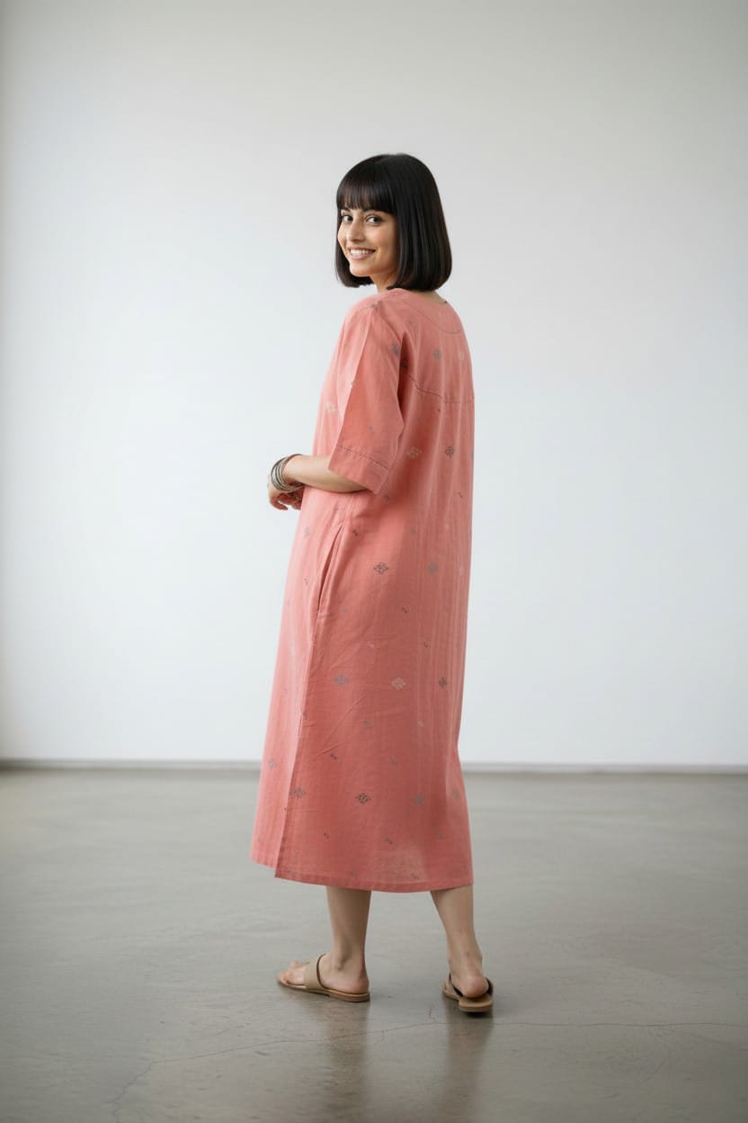 •Dress in pure handwoven Bengal Jamdani cotton