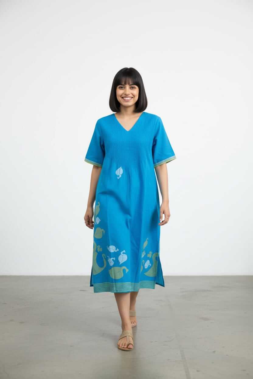 •Dress in pure handwoven Bengal Jamdani cotton
